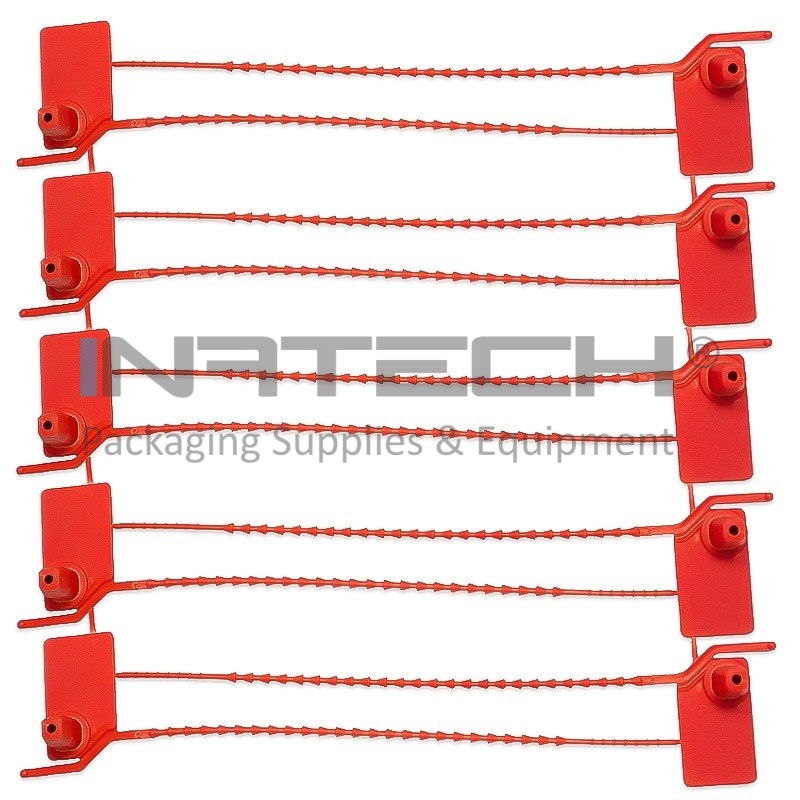 Sigilii De Securitate Lungime 155 mm, Dimensiuni 35x20 mm, Forta de Rupere 15 Kg, Culoare Rosu, Buc / Pachet 5