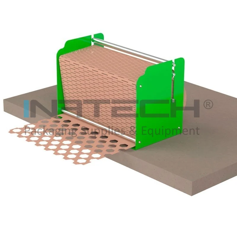 Dispenserul pentru hartie kraft este ideal pentru industrii, precum cea a cosmeticelor, a sticlei si a ceramicii, decoratiunilor (lampi, figurine, sfesnice), jucariilor, florilor si nu numai. Dispenserul este adaptat la hartie Honeypack cu latimile: 40 cm si 50 cm. Acest sistem este potrivit pentru uz personal, dar si pentru micile businessuri care ambaleaza ocazional produse si care au un spatiu de lucru limitat.