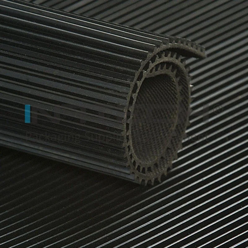 Banda Antiderapanta Ridata este fabricata dintr-un material plastic, dar este aproape imposibil de distins fata de un material din cauciuc, aspectul ei apropiindu-se de cel al unui produs din cauciuc cu nervuri, dar cu avantajele unui compozit din plastic.