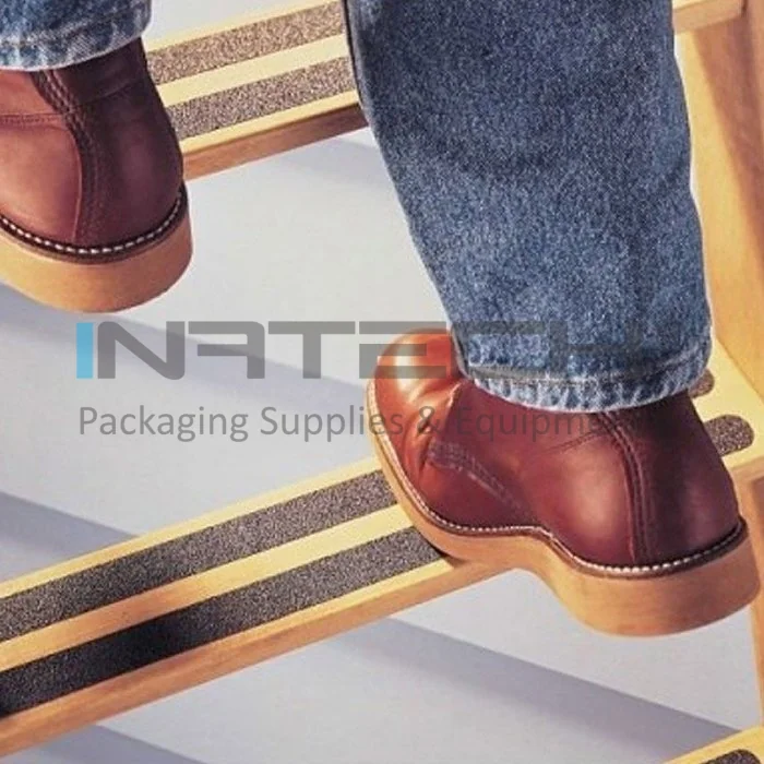 Banda Antiderapanta este creata special pentru a fi aplicata pe suprafete drepte si intens circulate, acolo unde exista pericolul alunecarii (gresie, marmura, granit, cazi emailate), avand o aderenta foarte buna atat in utilizarea ei in spatii exterioare cat si la interior.