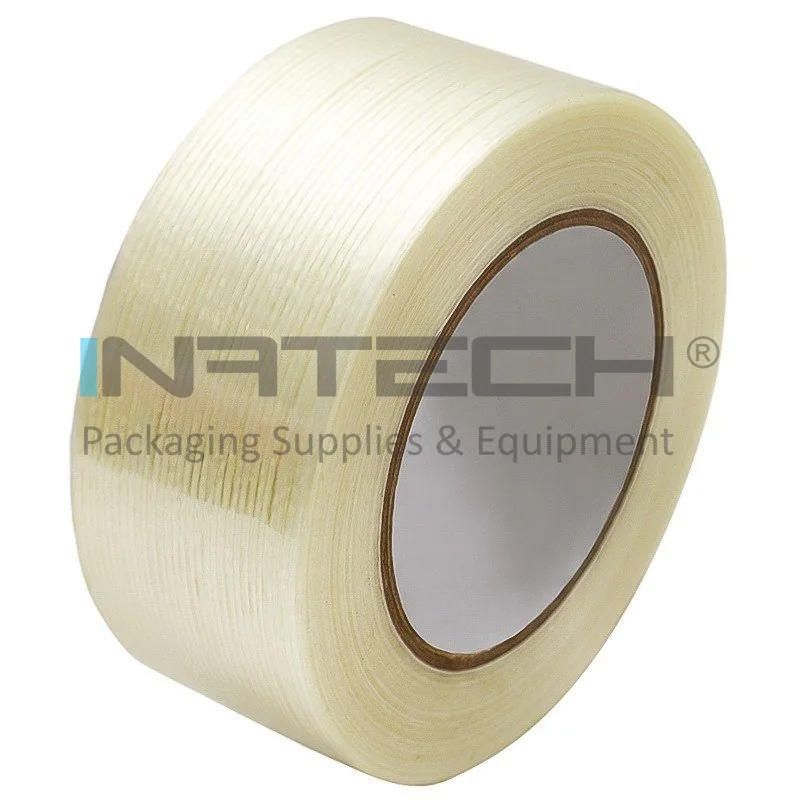 Banda Adeziva Cu Fibre Monodirectionale este compusa din folie de polipropilena laminata cu fibre de sticla si este destinata impachetarii produselor grele. Aplicatiile benzii adezive cu fibra de sticla includ impachetarea si legarea produselor cu o greutate mai mare, asigurarea paletilor si inchiderea si consolidarea cutiilor de transport. Banda adeziva are o rezistenta buna la tensionare si o capacitate redusa de alungire.