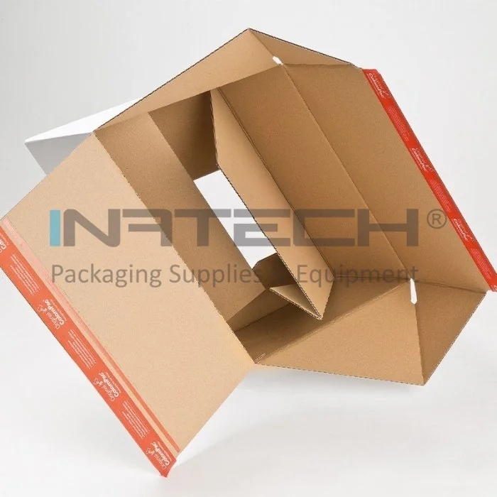 Cutii Cu Autoformare Premium pentru e-commerce, ce sunt disponibile intr-o gama de dimensiuni variata. Cutiile cu autoformare sunt destinate special pentru livrari sigure pe distante lungi. Produsul este echipat cu adeziv pentru sigilarea si resigilarea cu usurinta a cutiei.