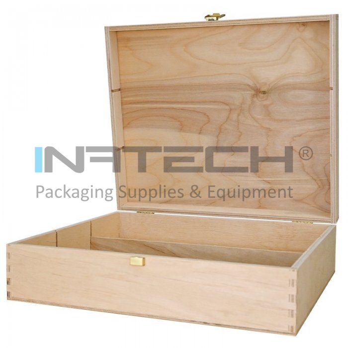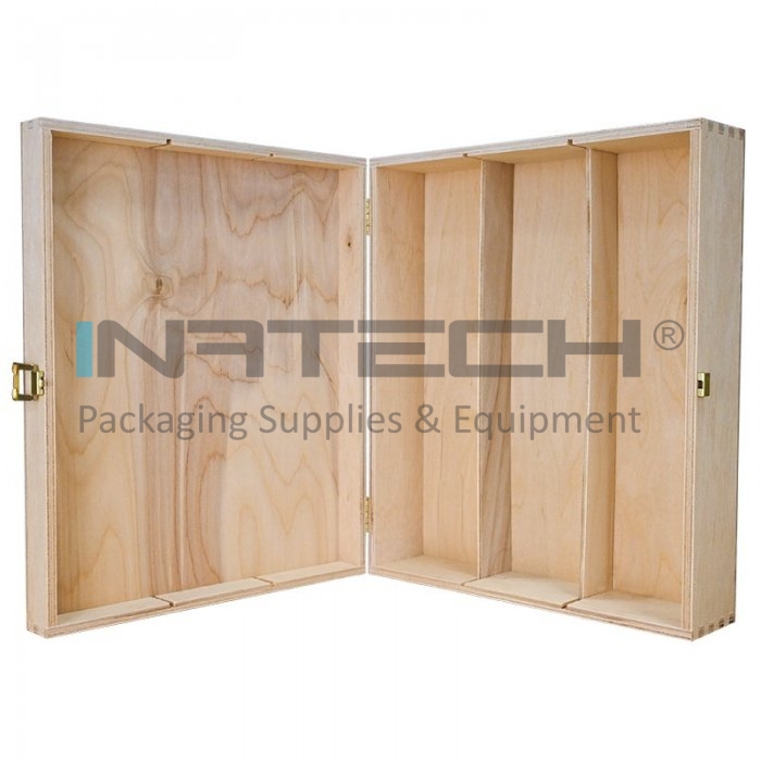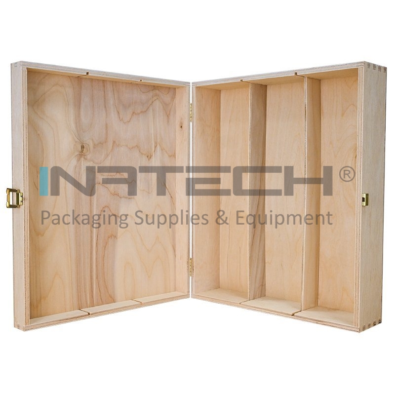 Cutie Din Lemn Pentru 3 Sticle De Vin Lungime 335 mm, Latime 270 mm, Inaltime 95 mm, Capac Cu balamale, Material Lemn, Culoare Natur
