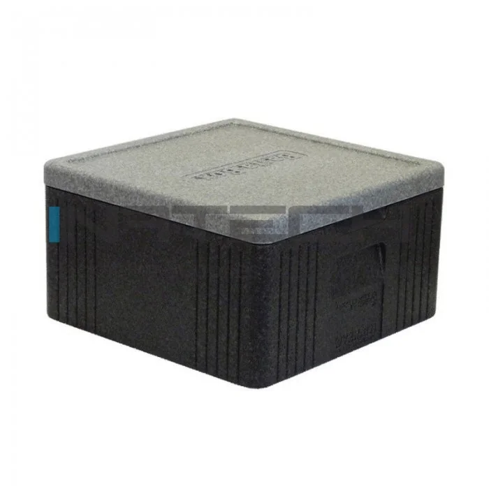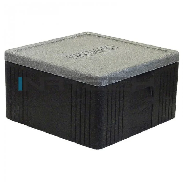 Cutii Termoizolante Pizza Capacitate 20 kg, Dimensiune Interioara 346 x 346 x 170 mm, Dimensiune Exterioara 400 x 400 x 220 mm, Material EPP, Culoare Negru / Gri, Buc / Pachet 48