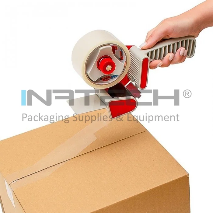 Dispenser Pentru Banda Adeziva utilizat pentru sigilarea si lipirea cutiilor din carton. Acesta creste productivitatea impachetarii si elimina irosirea benzii adezive. Aplicatorul de banda adeziva este prevazut cu maner de cauciuc pentru usurinta in utilizare si cu dispozitiv de taiere a benzii adezive.