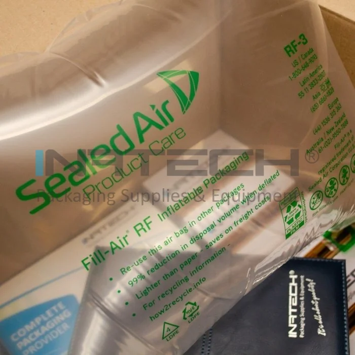 Sacii gonflabili Fill-Air RF sunt disponibili in 7 modele diferite, in diverse dimensiuni pentru aplicatii de umplere, fixare a produselor in interiorul cutiilor de transport. Sacii sunt prietenosi cu mediul si pot fi reutilizati. Comparativ cu materialele de umplere conventionale, volumul sacilor poate fi redus cu pana la 90%.