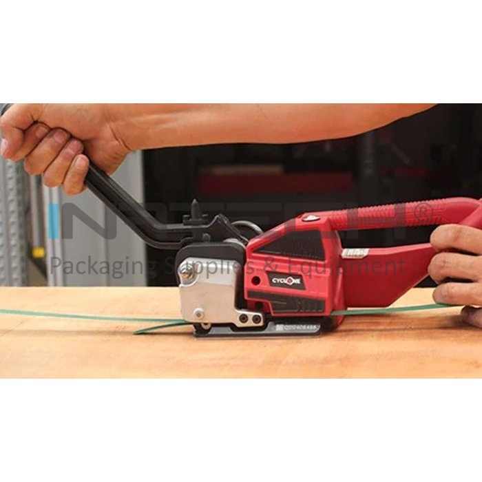 Aparat De Lipit Banda PP/PET Cyclone 13-16 mm Origine Italia, Acumulator Lithium 18V, Grosime Banda 0.45 - 0.6 mm, Latime Banda 12 - 16 mm, Utilizare Manuala, Greutate 3,6 kg, Sistem Sigilare Prin Frictiune