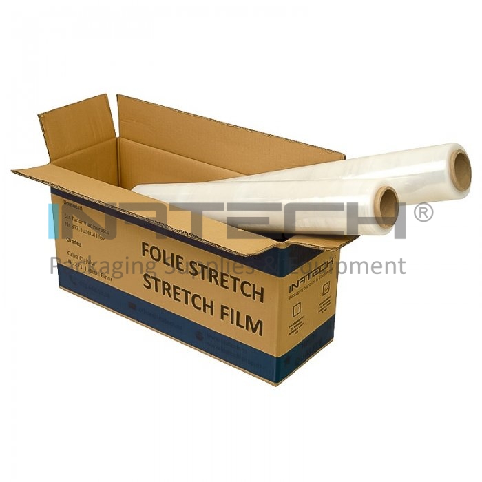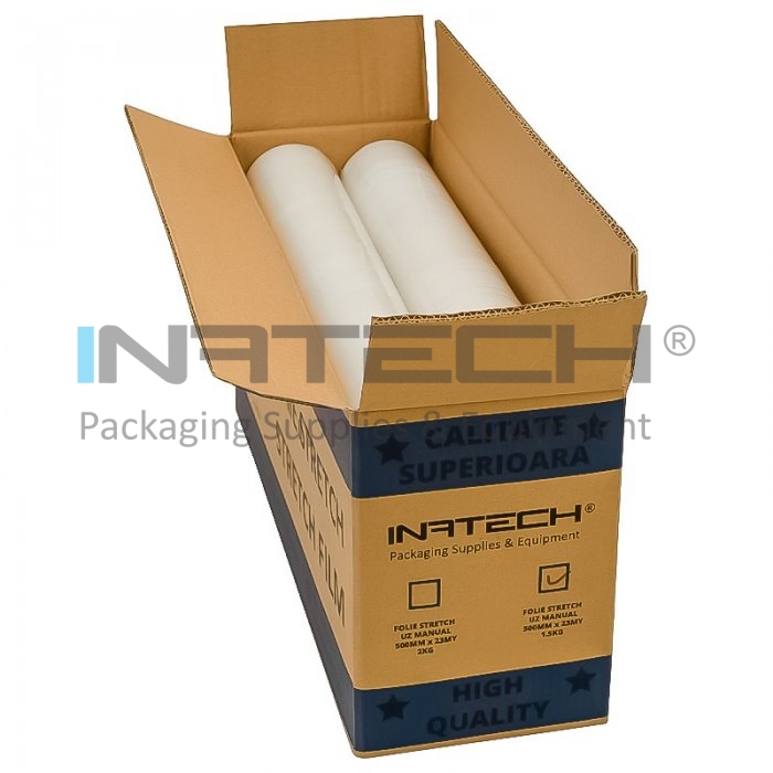 Folie Stretch Uz Manual Personalizata Latime 500 mm, Numar Culori 1/2, Grosime 23 my, Greutate 1.6 kg, Greutate Tub 0.3 kg, Buc / Pachet 360