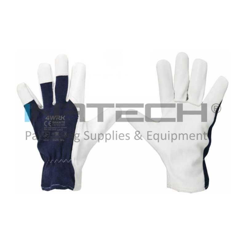 Manusi de lucru GRANITE Marime 10/XL, Material piele alba-tesatura bleumarin, Greutate 29GR/Manusa gr, Culoare piele alba-tesatura bleumarin