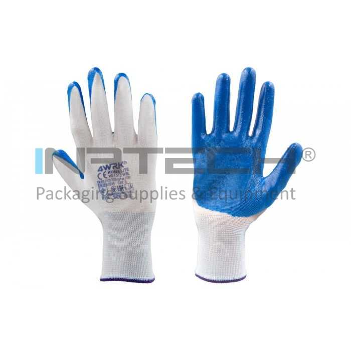 Manusi de lucru KRONA LITE Marime 10/XL, Material poliester-nitril, Greutate 13GR/Manusa gr, Culoare tesatura tricotata alba-acoperire albastra