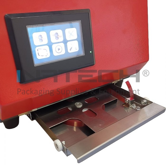 Aparat De Legat Cu Banda ce asigura o viteza de ambalare de 25 de cicluri/min si utilizeaza benzi cu latimea de 12 mm. Masina de legat cu banda poate functiona manual sau automat cu senzor, iar parametrii sai sunt gestionati de un panou color cu ecran tactil amplasat in partea frontala a masinii.