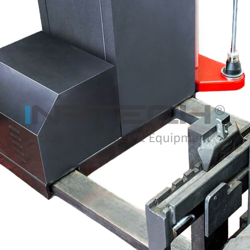 Distanta dintre masa rotativa si coloana permite infolierea paletilor cu diametrul de pana la 1650 mm, inaltime de 2200 mm si capacitate de pana la 2000 kg.