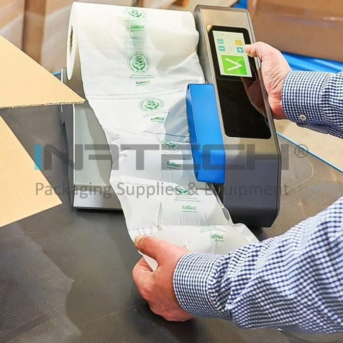 Sistemul De Ambalat Cu Perne De Aer face parte din noua generatie de masini capabile sa produca atat pernute de aer, cat si folie cu bule. Acesta ofera performante deosebite deoarece este rapid, silentios si prezinta posibilitatea de conectare prin Bluetooth.