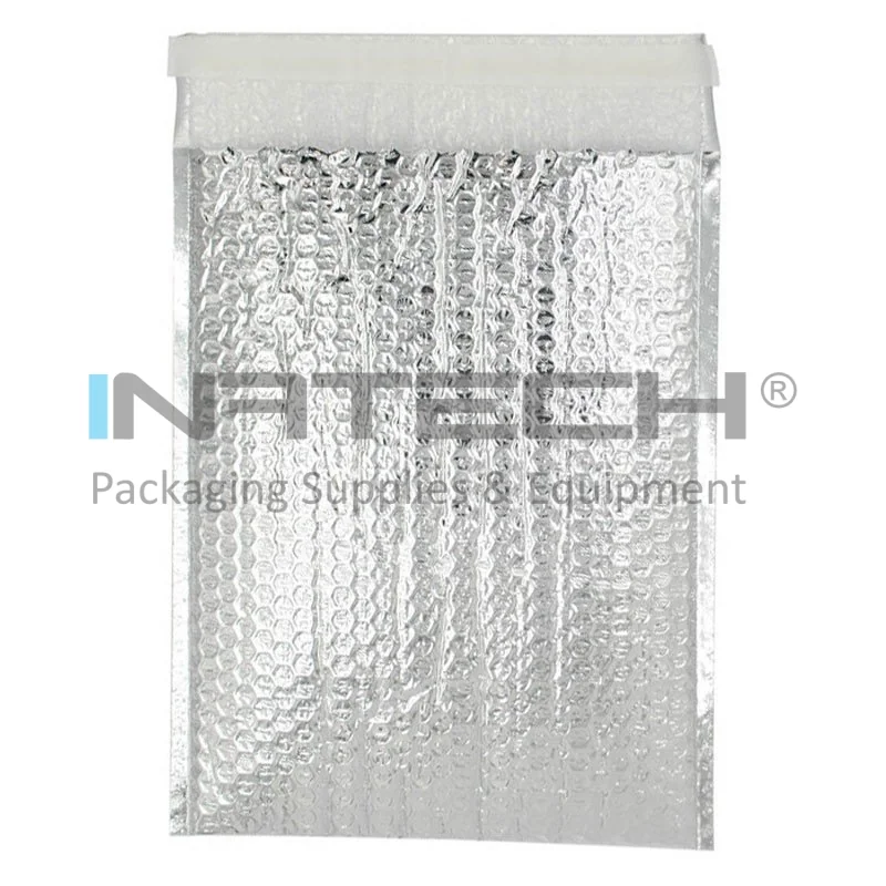 Plicul cu bule cu clapeta adeziva ofera o solutie de protectie termica pentru produse sensibile la caldura si pentru produse perisabile. Fiind alcatuite din trei straturi de material (pet metalizat, folie cu bule si polietilena expandata), plicurile protejeaza produsele impotriva factorilor externi, iar clapeta adeziva face ca utilizarea lor sa fie rapida.