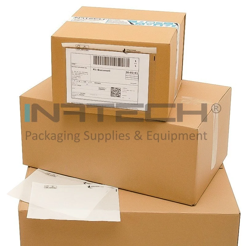 Plicurile adera perfect pe diverse suprafete – carton, folie stretch, plastic sau metal – si raman fixate ferm, fara riscul de desprindere. Transparenta ridicata permite verificarea rapida a documentelor, fara a fi nevoie de deschiderea coletului.