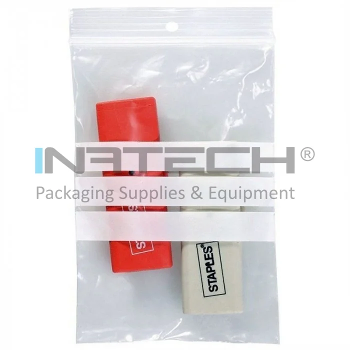 Au diverse dimensiuni si sunt ambalate in cutii, 100 buc/pachet. Pungile cu inchidere tip fermoar au trei linii rosii si gaura pentru agatare si benzi de scriere opace.