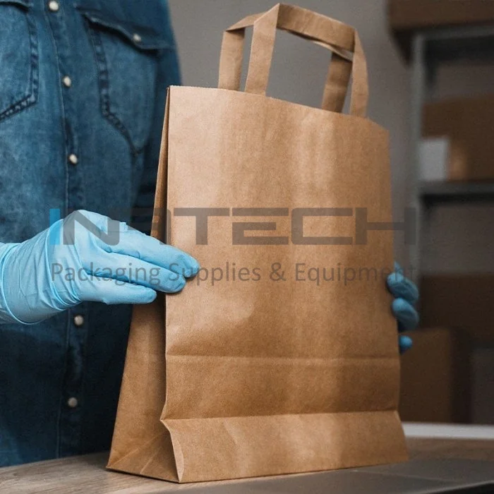 Pungi Hartie Cu Maner Plat, Hartie Kraft Natur 70g/mp