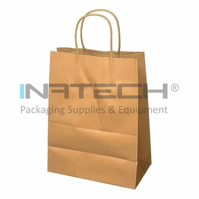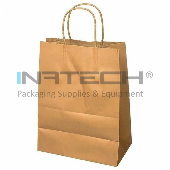 Pungi Hartie Cu Maner Rasucit, Alb/Natur Dimensiuni 250 x 110 x 300 mm, Tip Maner Sfoara, Material Hartie 90 gr/m2, Culoare Natur, Buc / Pachet 100