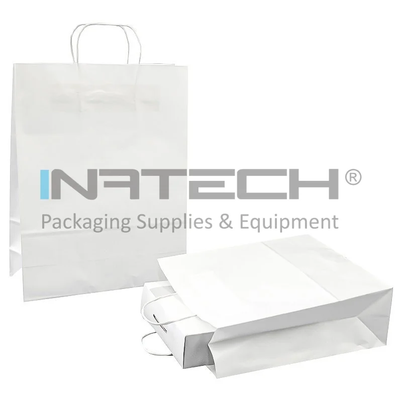 Pungi Hartie Cu Maner Rasucit, Alb/Natur