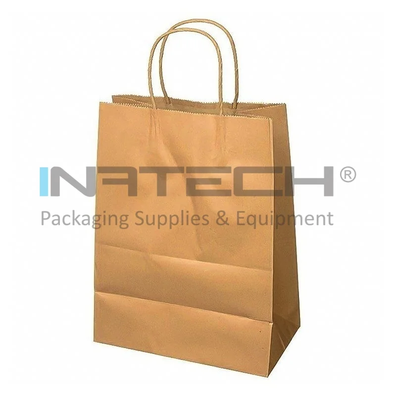 Pungi Hartie Cu Maner Rasucit, Alb/Natur Dimensiuni 320 x 120 x 410 mm, Tip Maner Sfoara, Material Hartie 90 gr/m2, Culoare Natur, Buc / Pachet 100